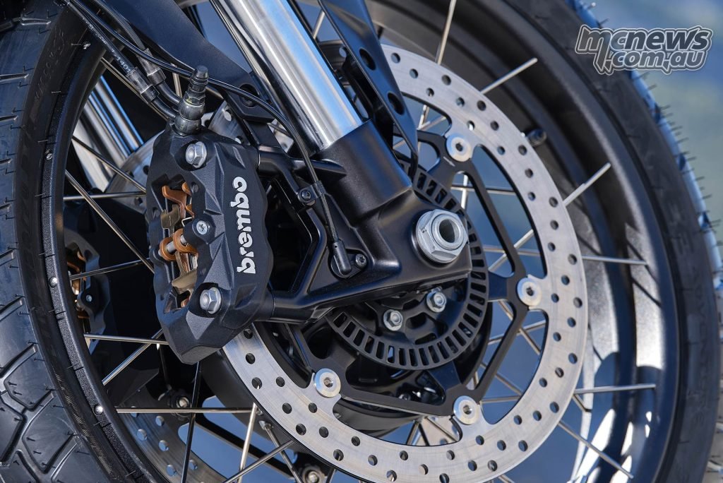 Brembo radial monoblocks have critical chew on a pair of 320 mm discs