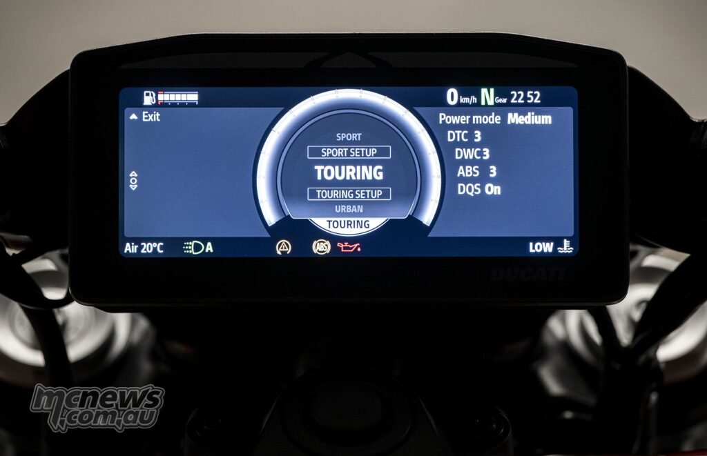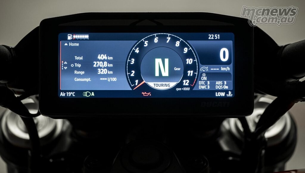 There’s additionally the standard Cornering ABS and traction management, wheelie management, energy launch, LED’s entrance and rear, cruise management, and turn-by-turn navigation as normal (good job, Ducati).