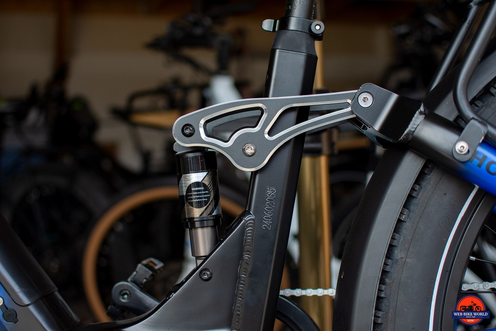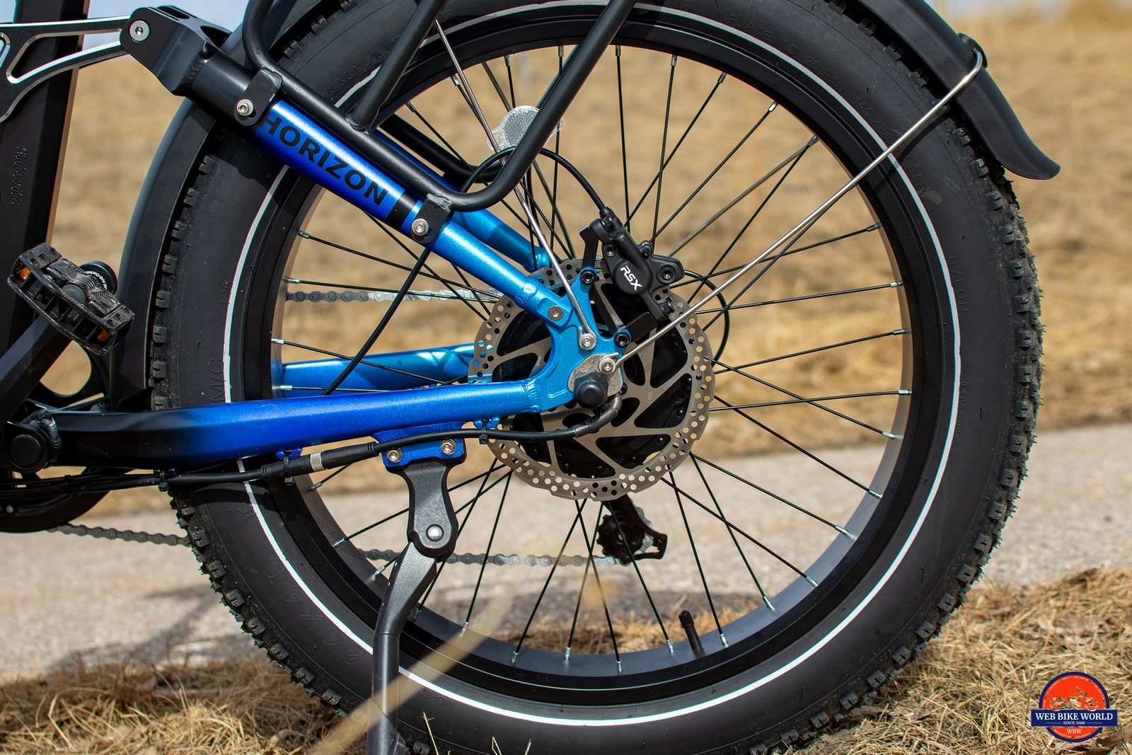 The HeyBike Horizon has a hydraulic-coil fork with 80 mm of journey (together with preload and lockout) and rear horst-link suspension. This setup on a folding bike is rare, to say the least, and paired with the 24” x 4” tires, the Horizon is essentially the most snug folding ebike I’ve ridden.