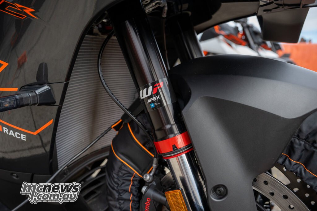 If you happen to’re actually, actually paying consideration, you may discover that the Apex Professional suspension used on the RC R has ever so barely shorter journey (at 130 mm on the entrance and rear in comparison with the 143 mm on the entrance of the Duke R and 140 mm on the rear). And that the bike sits almost 50 mm decrease by way of floor clearance (that distinction is exaggerated, given the RC R has a decrease fairing).
