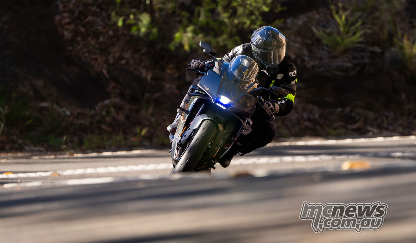 It’s simply splendidly balanced. The RC R rotates across the line beneath you. Most bikes really feel like they rotate from the underside of the tyres.