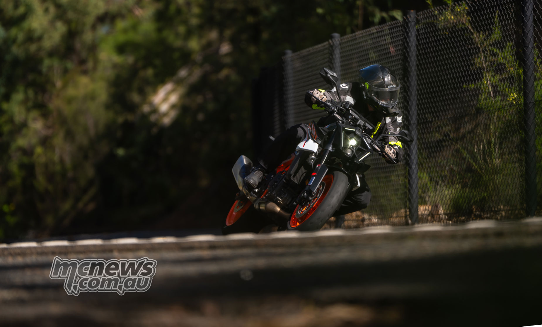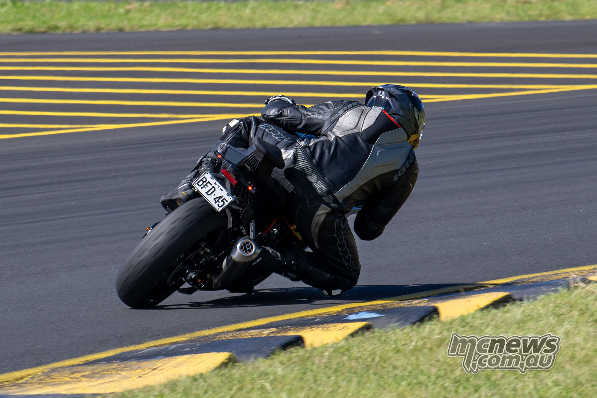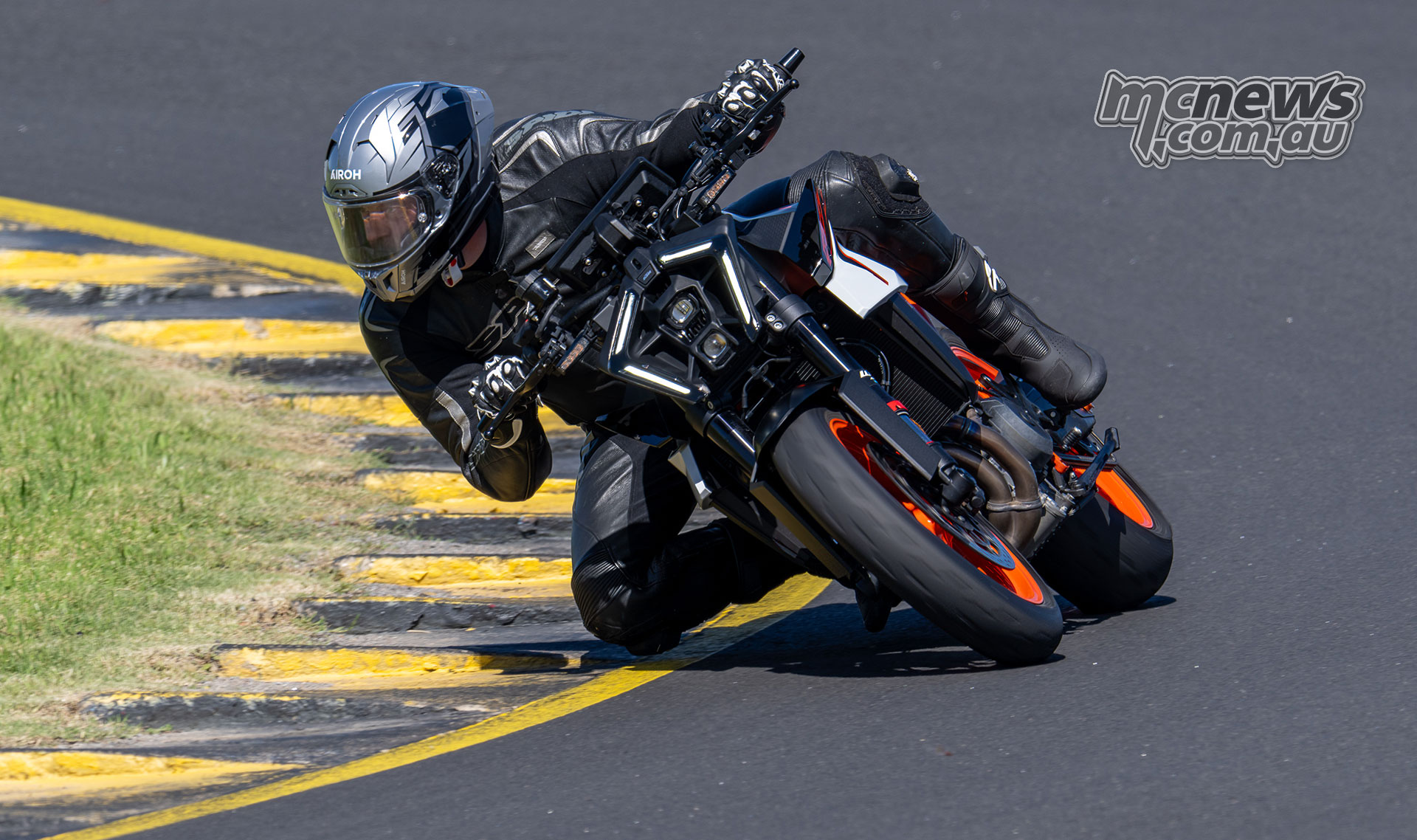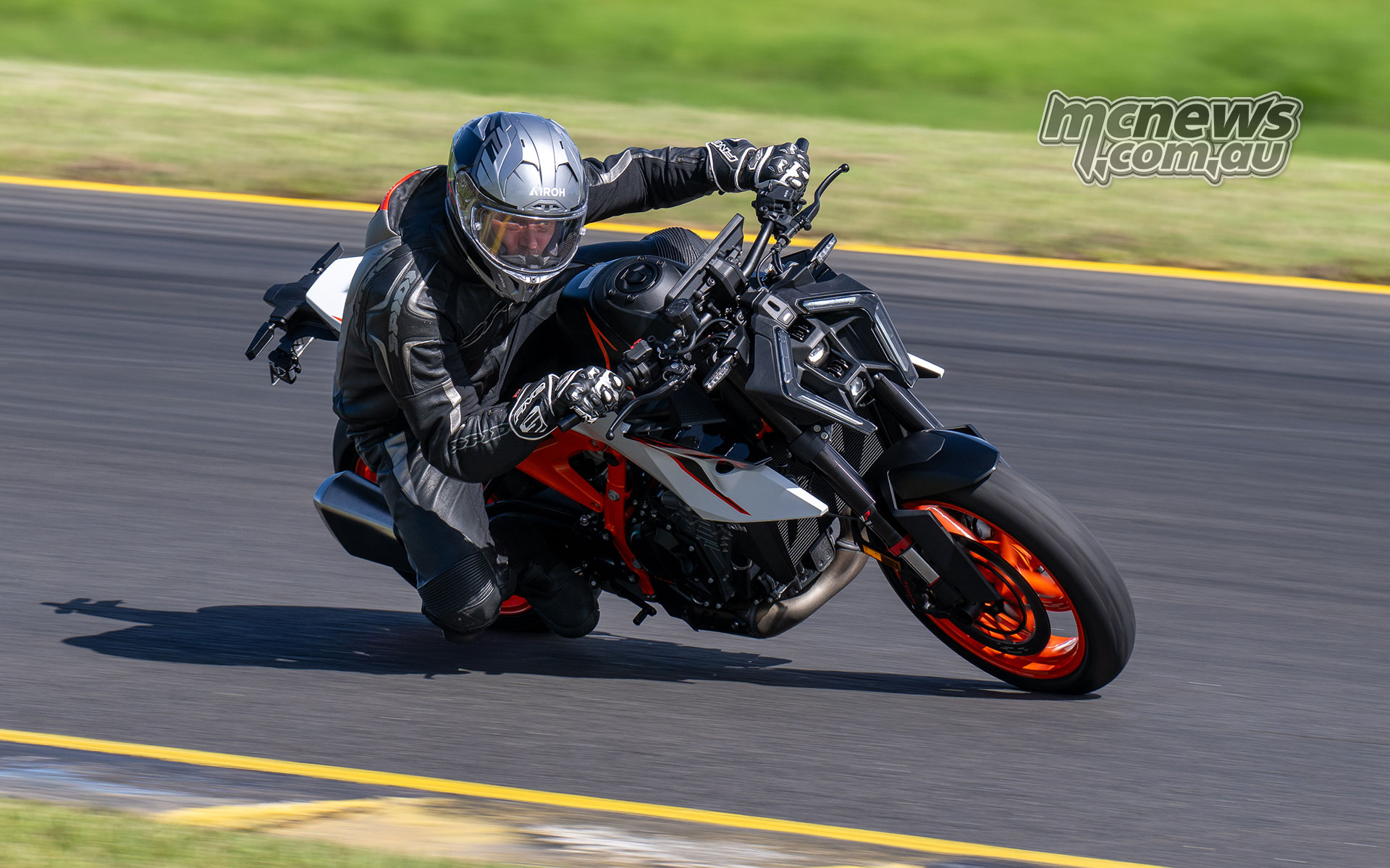 KTM 990 Duke R leaned over at Sydney Motorsport Park