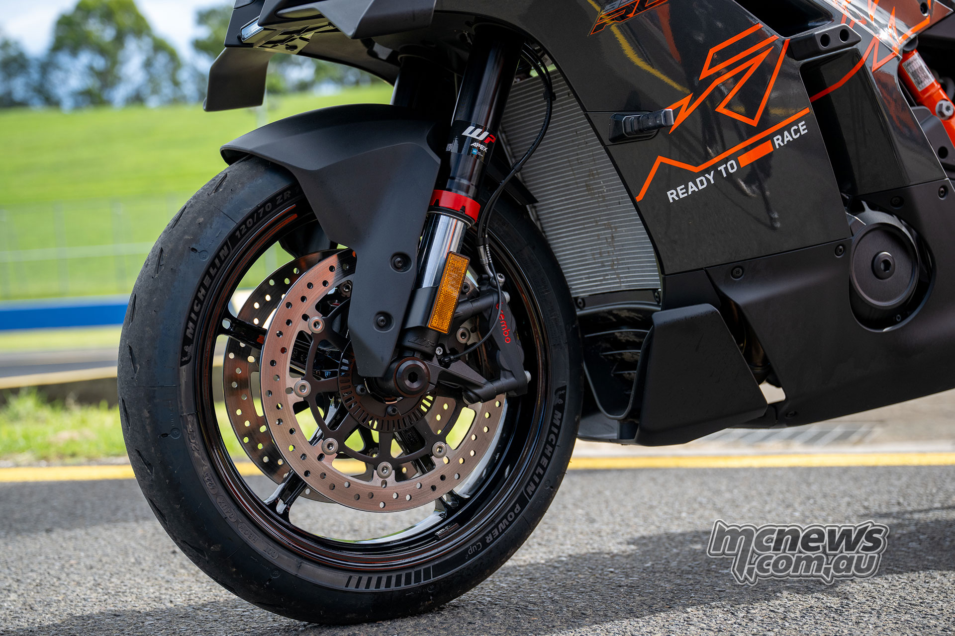 KTM 990 RCR turning into a corner at Sydney Motorsport Park
