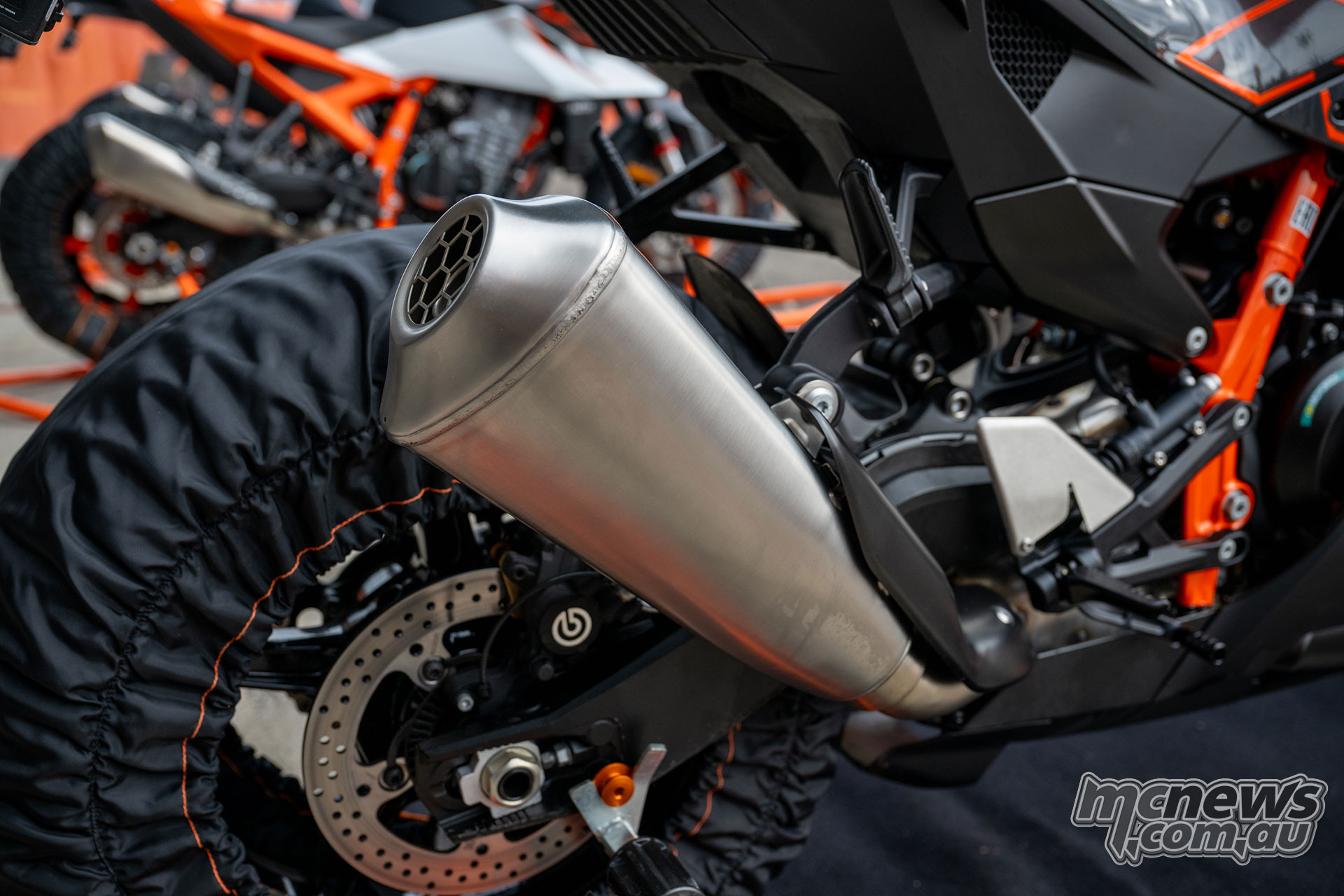 KTM 990 RCR exhaust detail and lower fairing
