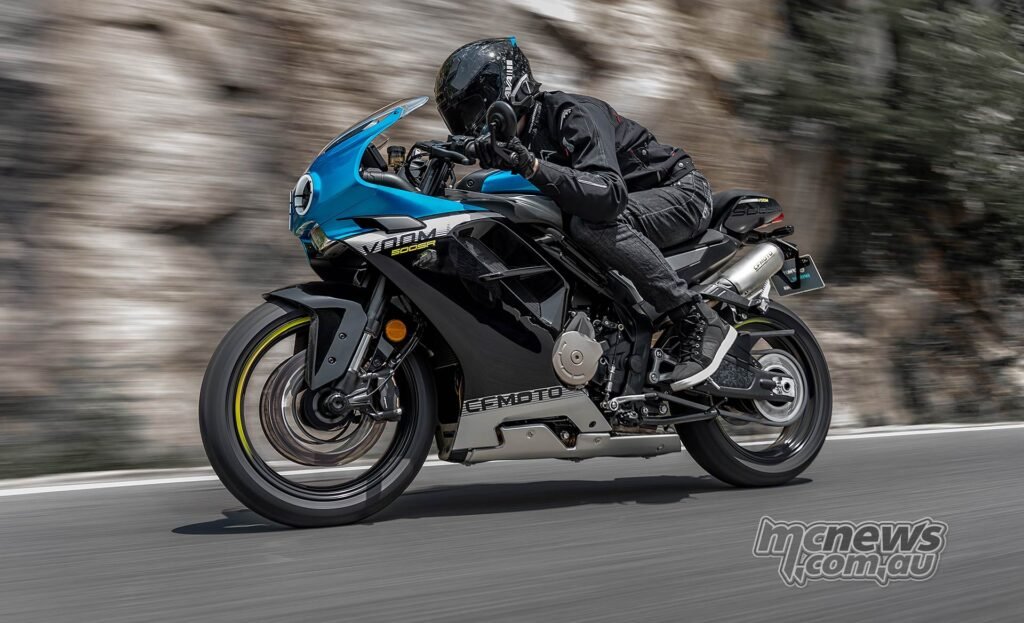 CFMOTO claims a high pace of greater than 220 km/h and a 0-100 km/h time of 4.2-seconds.