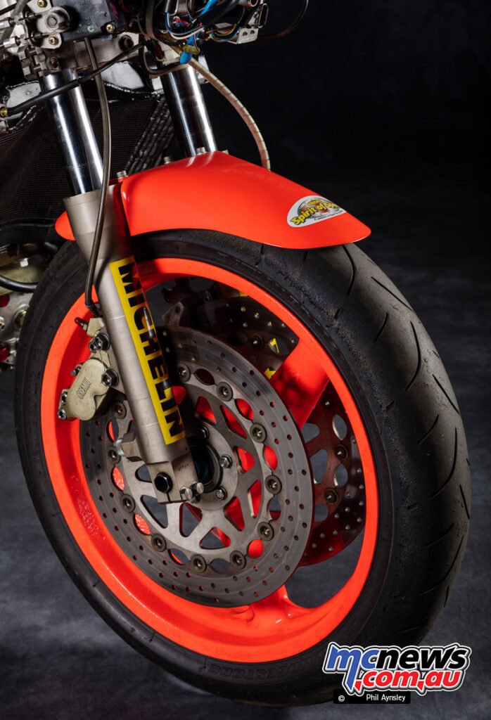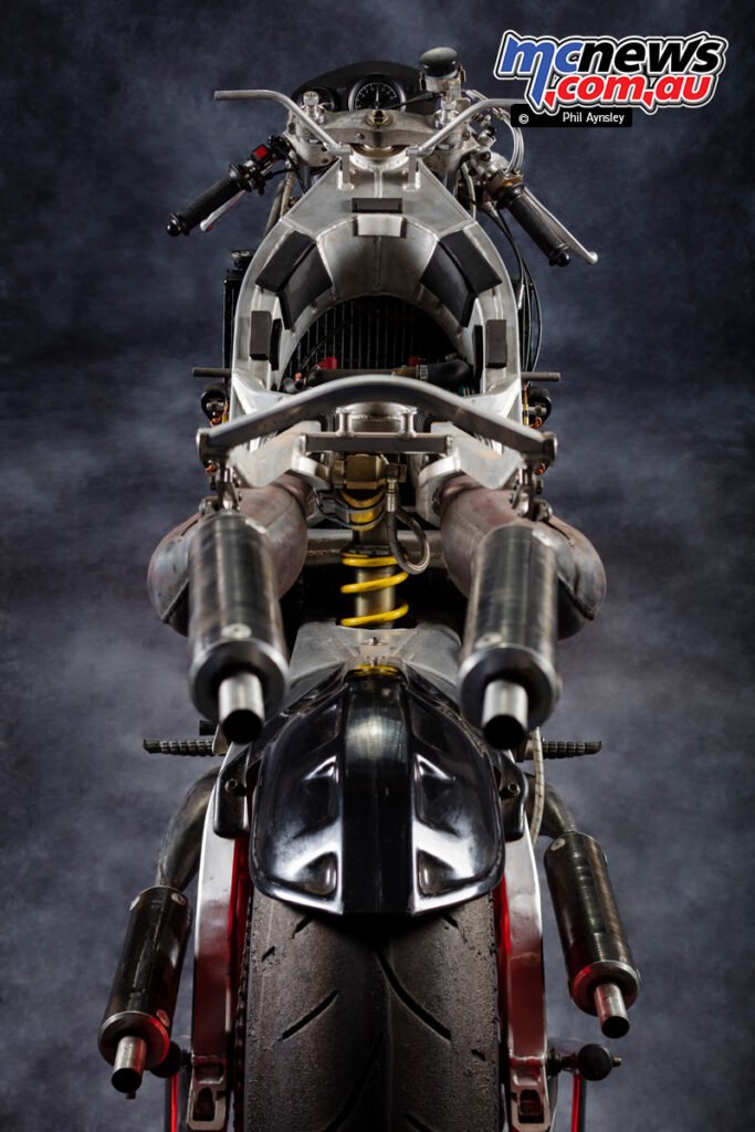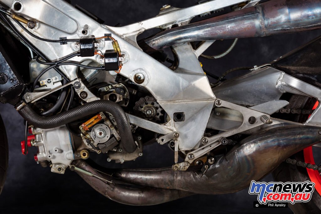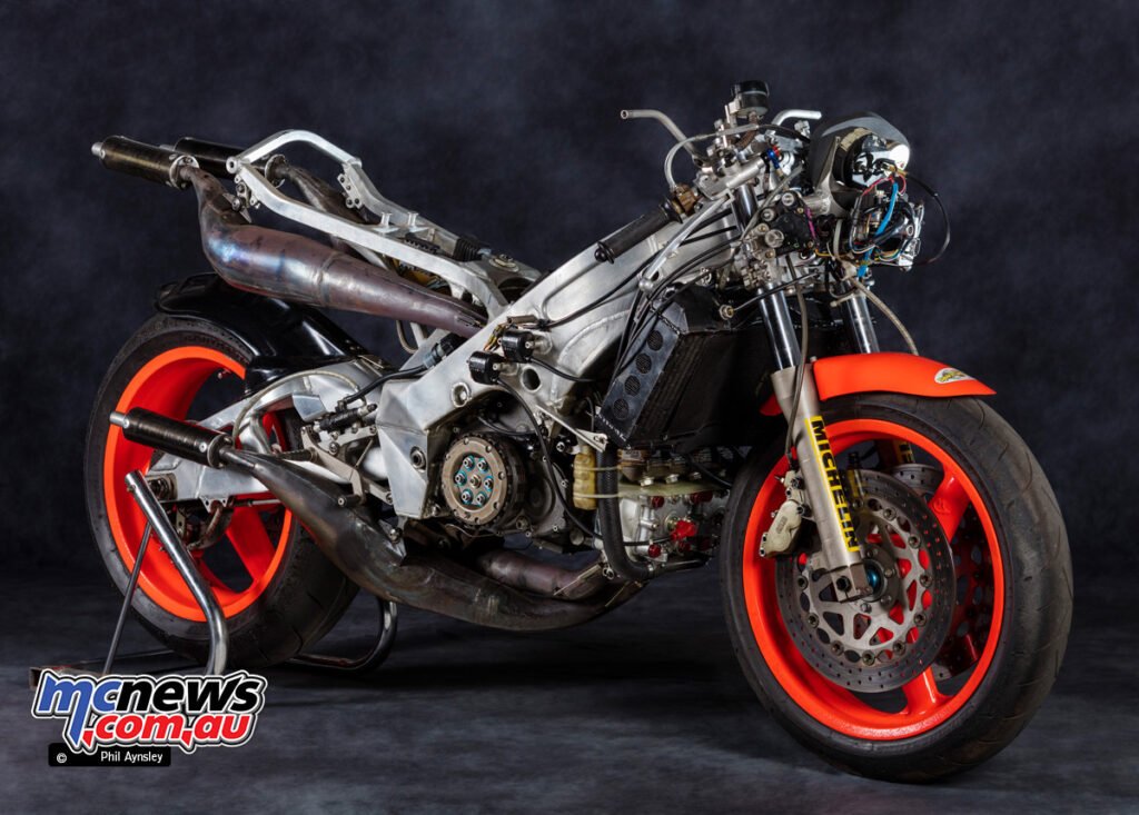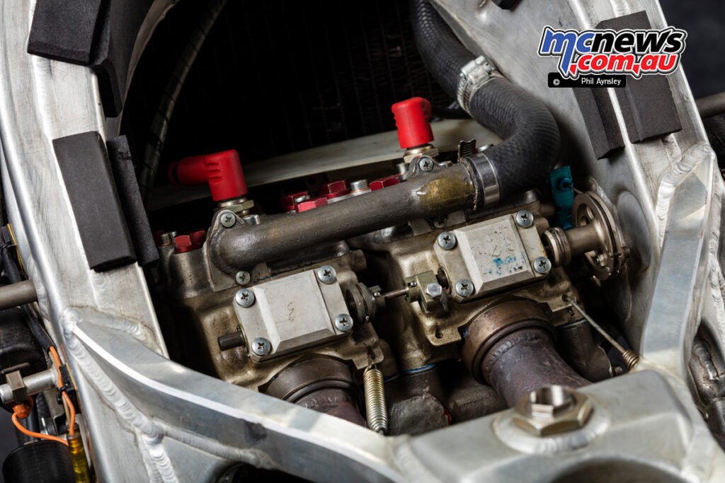 This was performed to cancel out the gyroscopic forces of the engine internals, bettering dealing with stability. The moist weight of the bike was 118 kg.