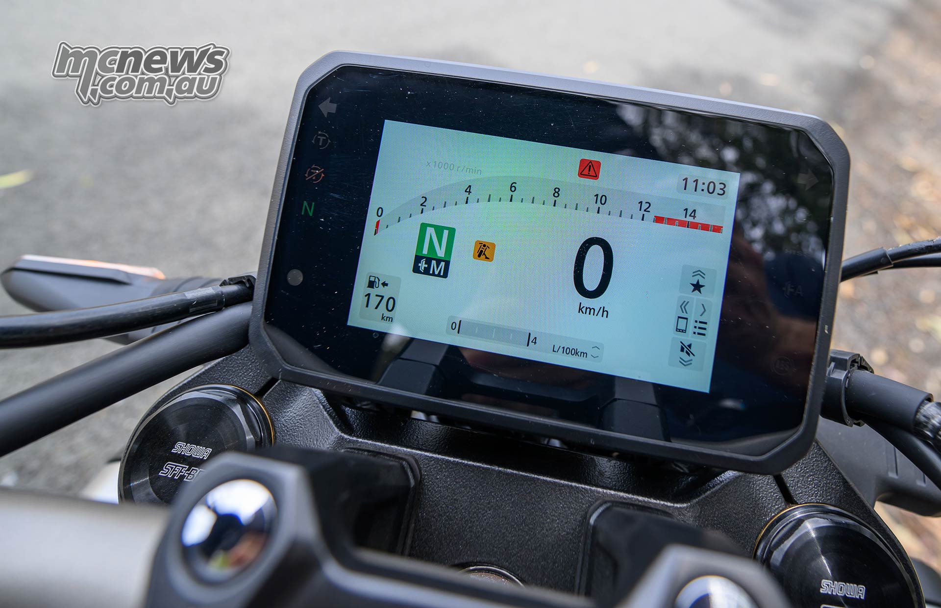 The brand new five-inch TFT is good. When mixed with Honda’s ‘Roadsync’ app this allows you to take calls and take heed to music by way of bluetooth, in addition to gaining access to flip by flip nav on display. Whereas I’m undecided that learners needs to be taking calls whereas they’re nonetheless determining journey, the turn-by-turn nav is a good addition.