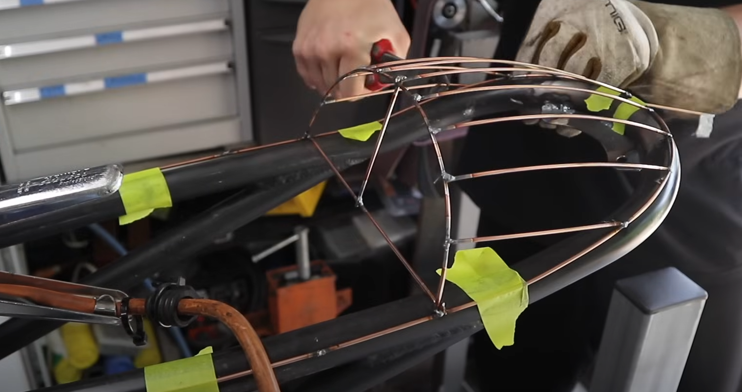 He formed the body utilizing 2.4 mm metal rods usually used for TIG welding. These rods labored properly as a result of they had been straightforward to chop, bend, and alter. As every bit was added, the body confirmed the place the curves lined up evenly, which made it simpler to identify areas that wanted correction.