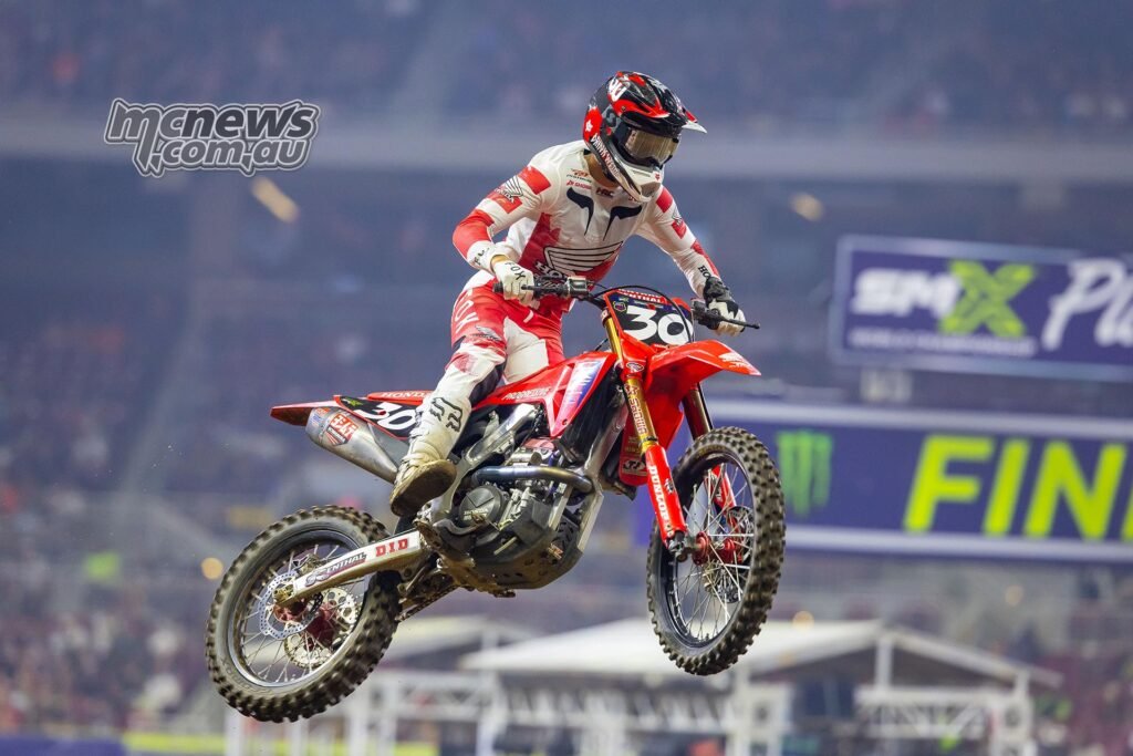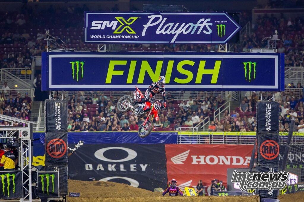 Hunter Lawrence (Crew Honda HRC Progressive) got here out on prime of a barnburner at Dome at America’s Centre, claiming the general at Playoff 2 of the SMX World Championship.