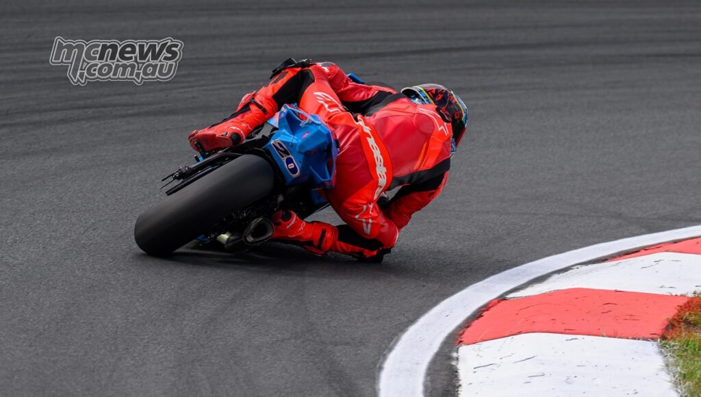 Luca Durning is the primary to dip his toe within the Subsequent Era Supersport waters. Whereas ASBK had initially determined to place Subsequent Gen bikes in with the Superbike class, following the opening observe classes they revised that call and have now put Durning in with the Supersport subject for this spherical, the place he was eleventh quickest as we speak. By means of the pace lure, Durning was equal quickest with Cam Swain, registering 243 km/h. That terminal velocity some 40 km/h slower than the 284 km/h Superbike benchmark set by Arthur Sissis as we speak. Clearly, having the Subsequent Era Supersport machine in with the Supersport class is the best way ahead, because it was designed to be.