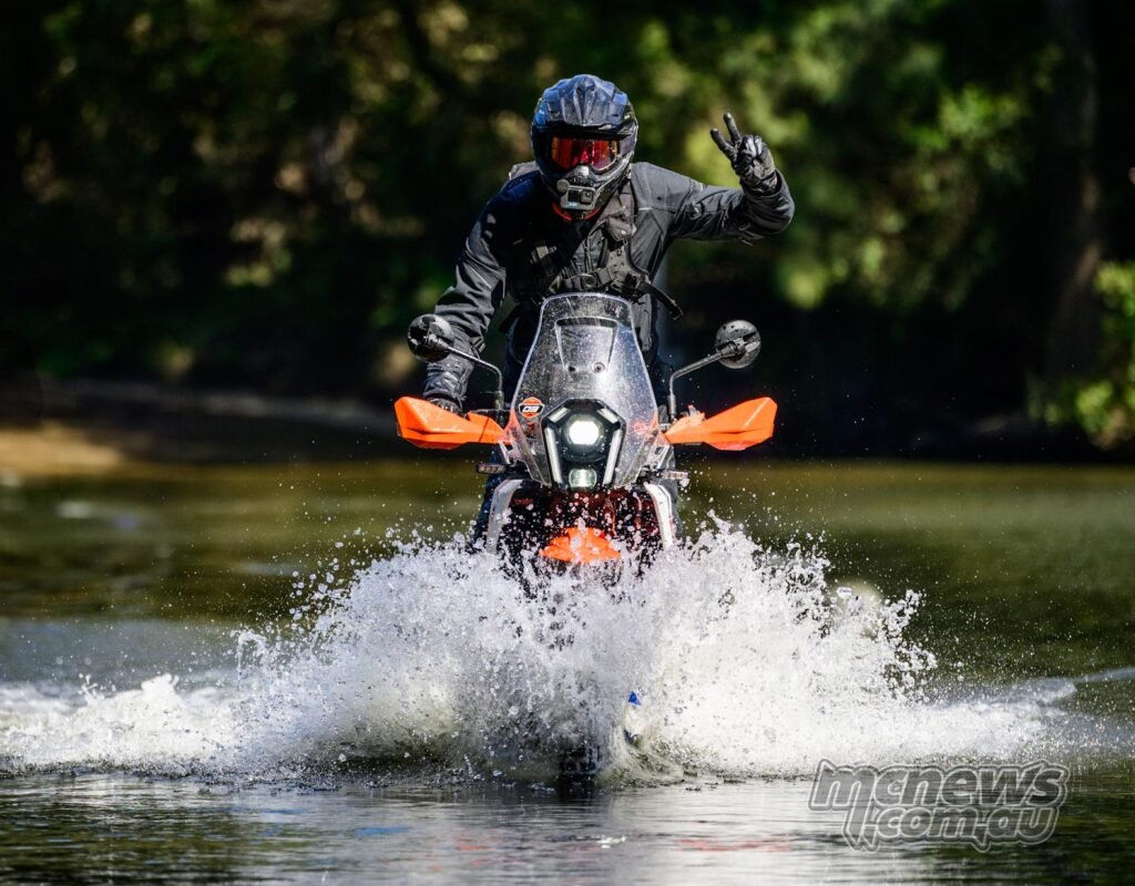 I ought to level out that, having deliberate for loads of off-road enjoyable on the launch, KTM had swapped the OEM Mitas tyres for barely extra aggressive Mitas XT Path plus tyres that supplied a bit of extra chew (with out being full knobbies). They suited the bikes rather well, even in slippery clay, and but have been nonetheless enjoyable sufficient on tarmac.
