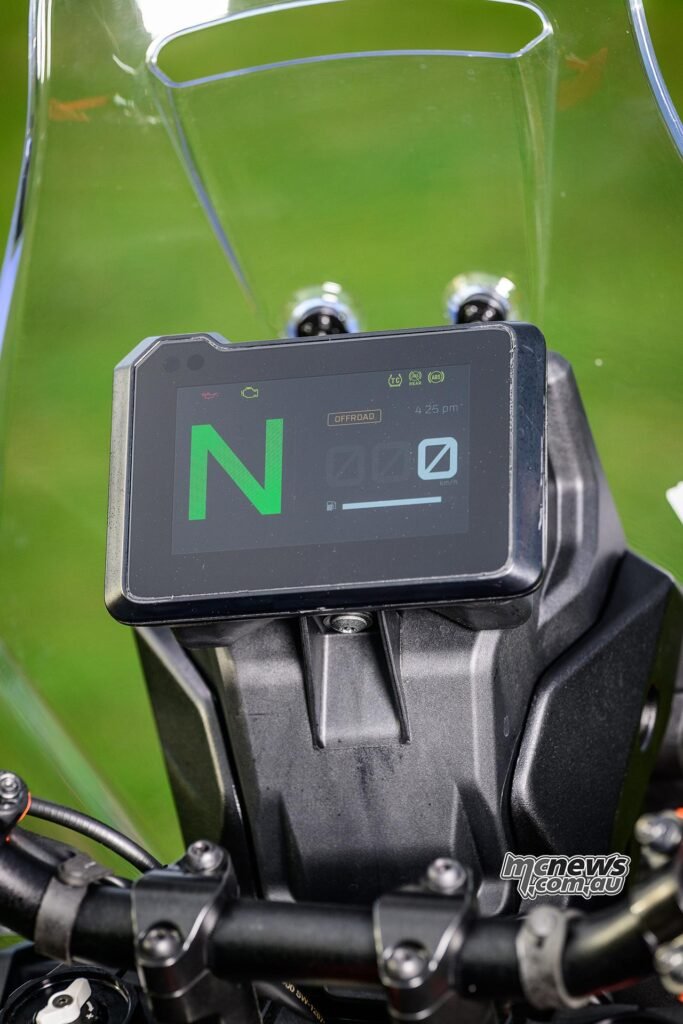 I appreciated the instrumentation on each bikes, however I truly actually just like the Enduro’s letterbox rectangle format. It sits good and comfortable behind the entrance display and provides you a bigger show than loads of different dual-sport bikes for straightforward readability. It has a fast toggle possibility to point out you numerous ‘different’ data, like your journey meter and settings as properly. Very good.