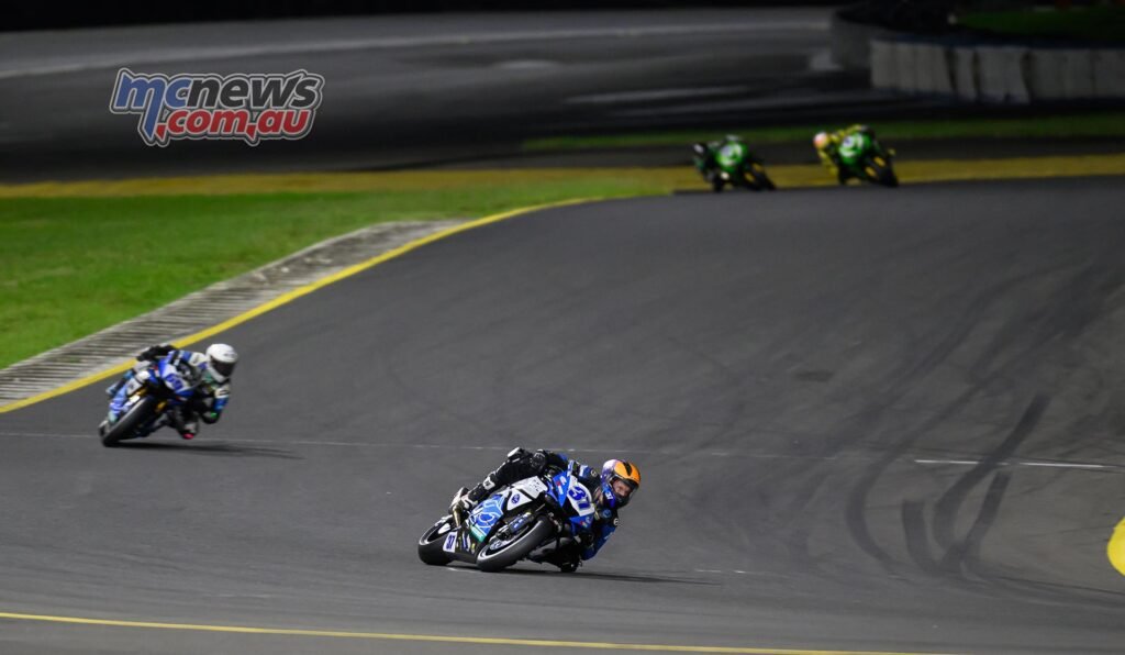 Circumstances had been damp for the opening 11-lap Supersport bout on Saturday afternoon, however the monitor was utterly dry by the point it got here to race underneath lights for the second and last stanza of the SMP weekend at 1950. Jack Mahaffy had resisted a late cost from behind by Will Nassif and Marcus Hamod within the opening race. That latter pair chasing him down on slicks as Mahaffy’s wets went away late within the race. The hole on the flag was a single hundredth of a second…