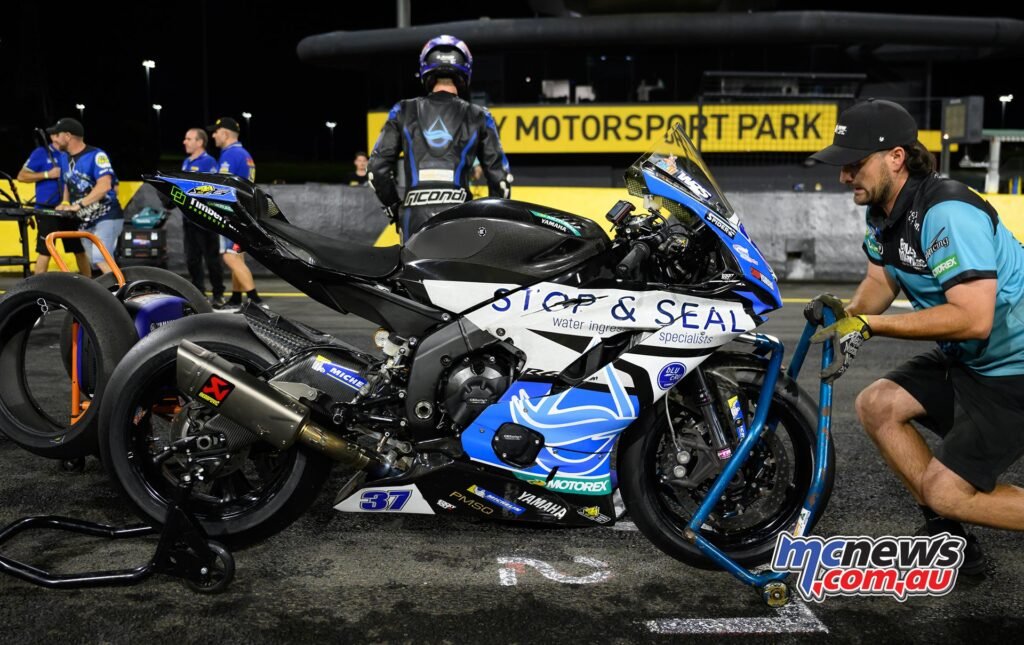 Will Nassif’s staff couldn’t get the brand new tyre they’d prepared for him behind the bike on the grid, and the race one podium finisher was pushed off the grid consequently.