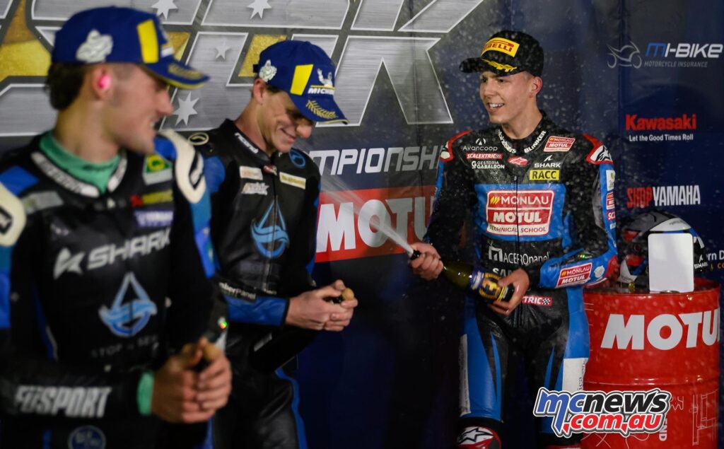 By half-race distance, the Cease & Seal pair had virtually six-seconds over third positioned Olly Simpson. The South Australian then misplaced that third place to Jesus Torres-Cabrera, and Hayden Nelson made that battle for the ultimate step on the podium into a busy three-way affair.