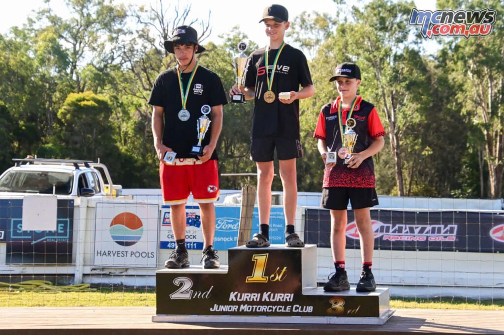 Within the 85cc 2str/150cc 4str 9–U/13 class Kaiden Lantry was one among two riders who have been unbeaten within the rounds, however he was the one who reproduced that kind within the last to guide dwelling clubmate Braxsen Anderson and Griffith rider Jye French.