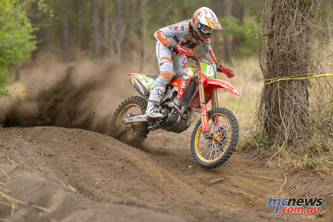 Angus Riordan (Phoenix Racing Honda) battled by to earn his first XC2 250 Professional class win of the season – Picture by Mack Faint