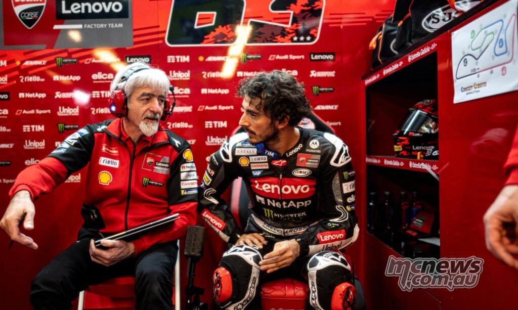 “The bike has barely improved. They didn’t change something such because the gearbox or huge gadgets, however I felt higher than in Misano. I didn’t make many laps due to the observe circumstances, however the laps we did have been correct laps by way of feeling. We labored lots on the settings, and I can say that having tomorrow as one other take a look at day, I targeted extra on race tempo than placing a smooth in for a time assault. Total, I really feel fairly good, so we’re at start line for tomorrow.”