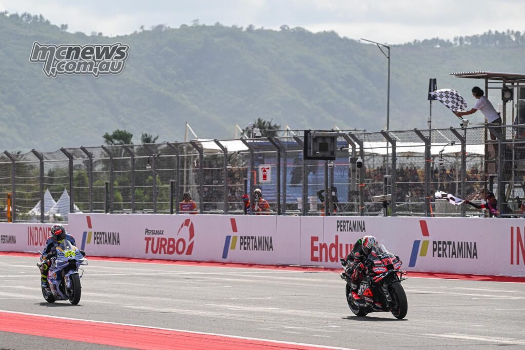 Franco Morbidelli and Fabio Di Giannantonio introduced each Pertamina Enduro VR46 Racing Staff Ducatis house in seventh and eighth, whereas Miguel Oliveira inherited ninth and the ultimate level after Marini’s penalty.