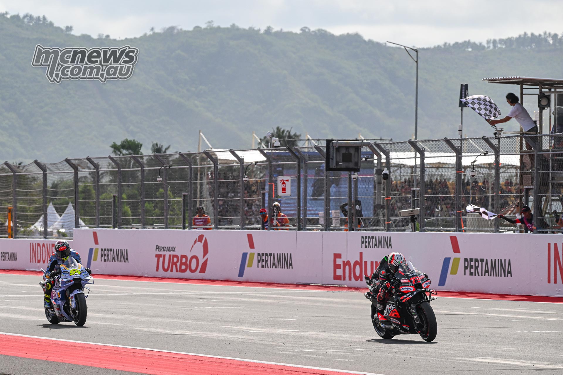 Fernandez crossed the road third to safe his maiden MotoGP podium and Aprilia’s first double top-three end underneath the Trackhouse banner.
