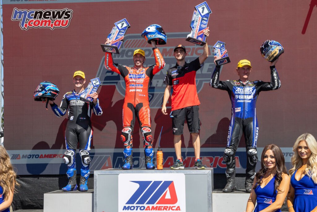 These two have been some three seconds forward of Rahal Ducati Moto w/Curler Die’s Corey Alexander, who was over 10 seconds forward of Imaginative and prescient Wheel M4 ECSTAR Suzuki’s Tyler Scott, who was working second previous to an off-track tour.