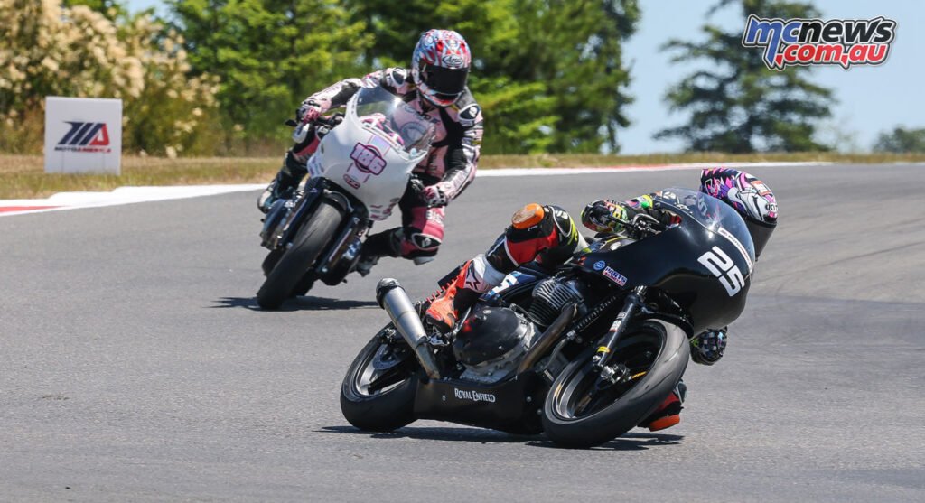 Kira Knebel (25) gained all three Royal Enfield Construct.Prepare.Race. battles over the course of the weekend within the Pacific Northwest. Miranda Cain was second within the third of the three races. Photograph by Brian J. Nelson