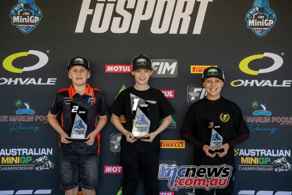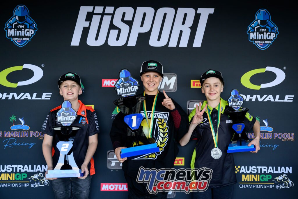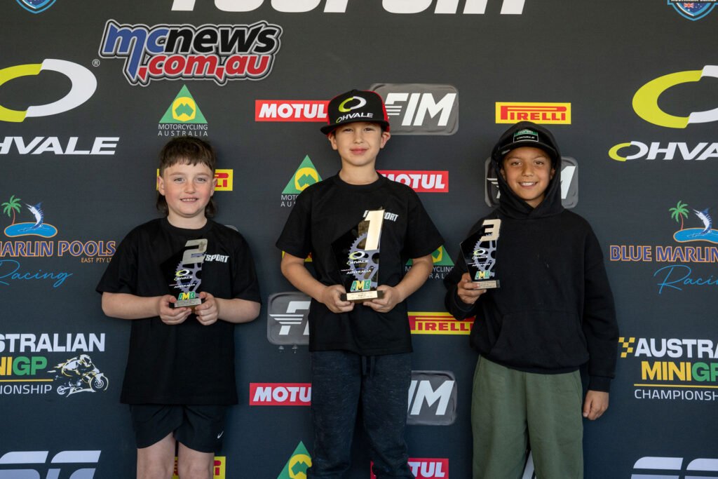 MiniGP 190 cc Race Two Podium – 2025 FuSport FIM MiniGP Australia Sequence Spherical 5 – Oakleigh, Melbourne