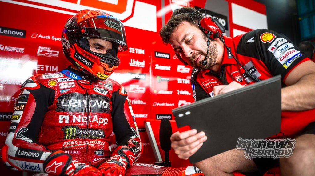 For Ducati Lenovo Crew, Marc Marquez and Bagnaia each remained within the combine by means of the decisive phases of Observe. Marc seemed aggressive all through and ended the day second, whereas Bagnaia did sufficient to remain inside the highest ten earlier than the rain returned and locked the order in place.