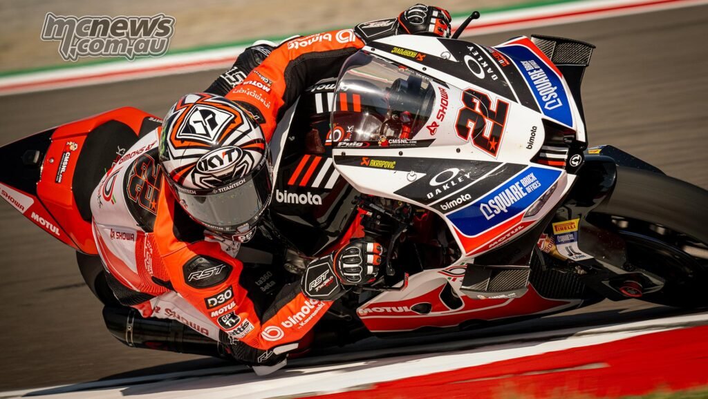 “That was a scorching one right this moment and I feel the monitor temperature obtained into the 50°C vary this afternoon. That was a brand new expertise for us on the bimota KB998 Rimini. We did a long term this afternoon and we tried one thing on the set-up of the bike. I missed a little bit of feeling, particularly getting into the corners. However now we have plenty of information now after this primary day on the bike in these situations. With all this data we will make extra ahead steps tomorrow. Bodily, I used to be feeling good and I feel that places us in a optimistic place for Saturday.”