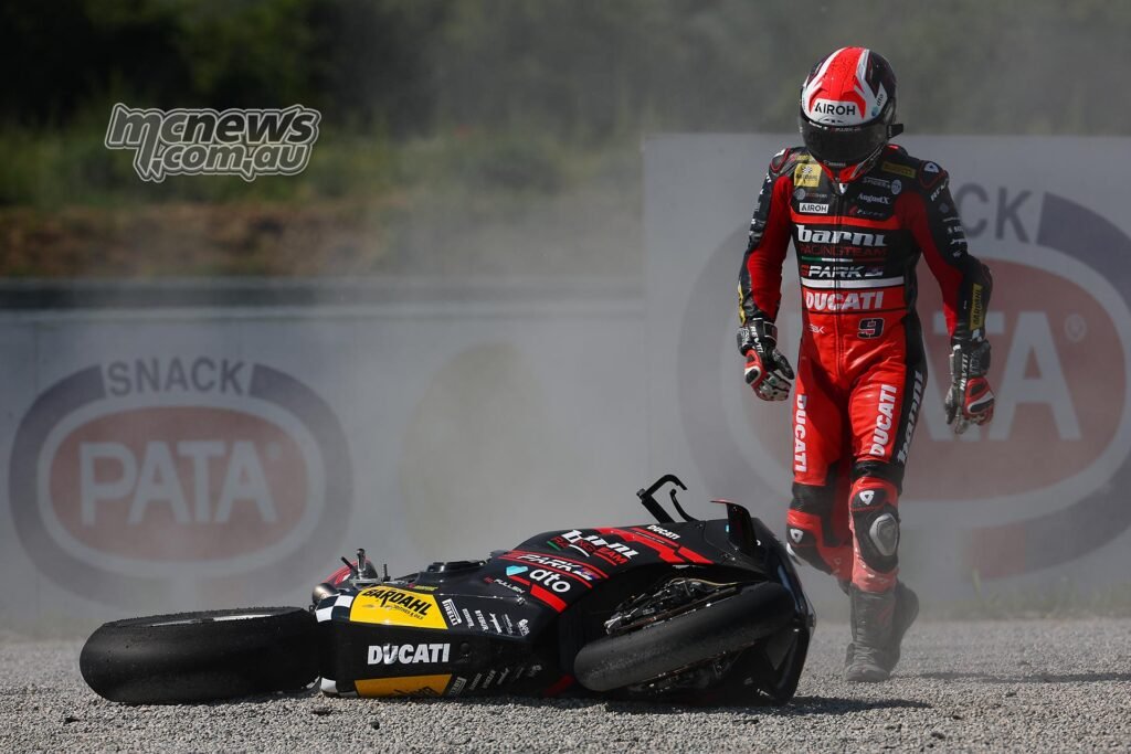 He wasn’t alone with Alvaro Bautista (Aruba.it Racing – Ducati) struggling three crashes. The Spaniard ended the day eighth quickest however solely accomplished 18 laps.