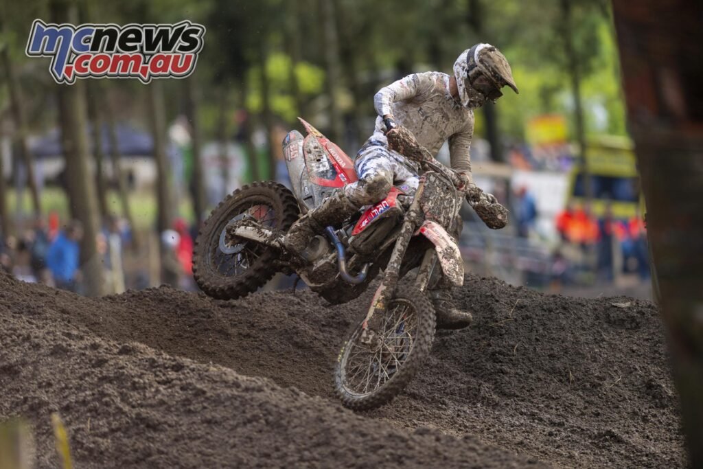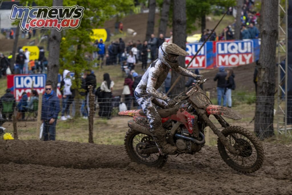 “Tough weekend. One other mudder! It’s so tough to remain constant in these forms of races. I had a crash within the first moto that value me plenty of positions as a result of it was within the first few laps however I might handle to complete eighth. Within the second race I had a greater begin and stayed on the entrance. Ending third was not sufficient for a podium or a high 5 however I took some factors. Now I’m hoping to rebound in France.”