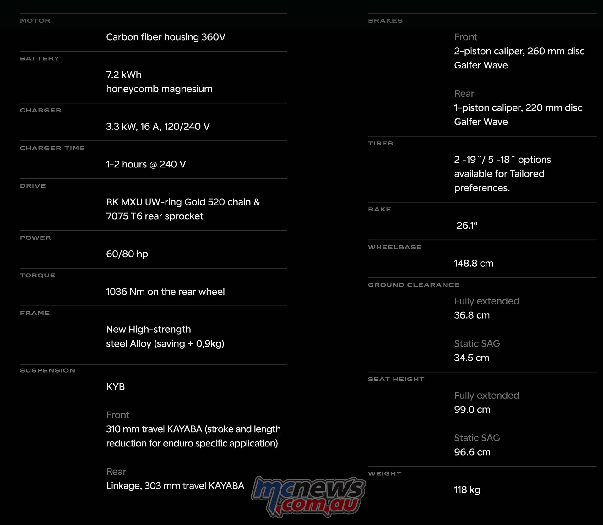 Powered by a proprietary 7.2 kWh battery, housed in a patented magnesium honeycomb case, the 118-kilogram VARG MX 1.2 now provides as much as 20 per cent extra vary than its predecessor, because of the up to date motor’s elevated effectivity and improved thermal administration. The wiring harness can also be improved.