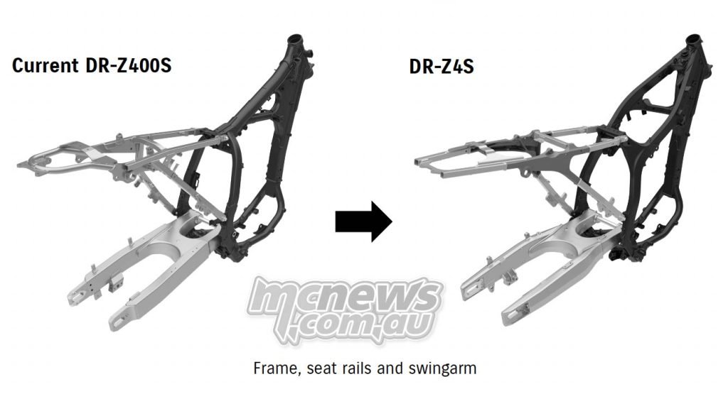 The DR-Z4S may even be joined by an SM variant that sports activities street-sized 17-inch rims/tyres and a way more highly effective entrance brake.