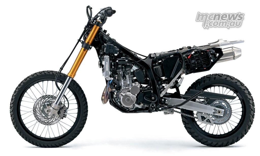 The dual-spar metal body, aluminium sub-frame and alloy swing-arm are all new, and the seat guarantees to be extra comfy together with the broader pegs.
