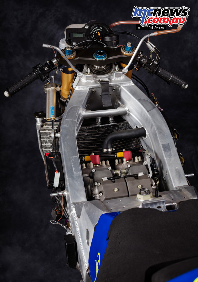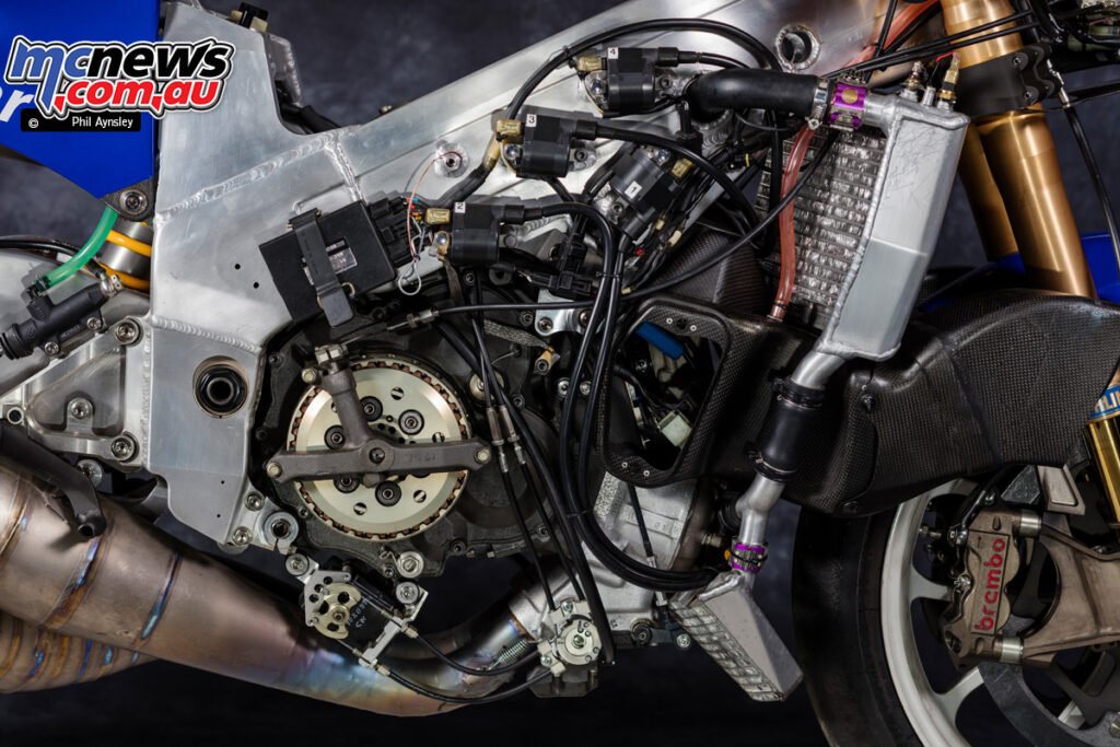 One of many key outcomes was a reassessment of chassis philosophy. Direct comparisons with earlier Yamaha and KR3 frames revealed that the Suzuki chassis was excessively inflexible. Because of this, the RGV’s body was made extra versatile, and its geometry was revised to enhance really feel, traction and mid-corner suggestions, significantly on nook entry and exit.