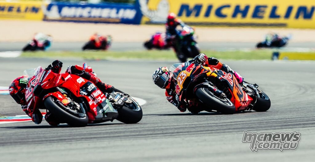 Pedro Acosta then proceeded to stalk Pecco, and issues began to look quite inevitable for the hapless Italian. As if Acosta shouldn’t be going to have a crack at you when he’s that shut. And he did.