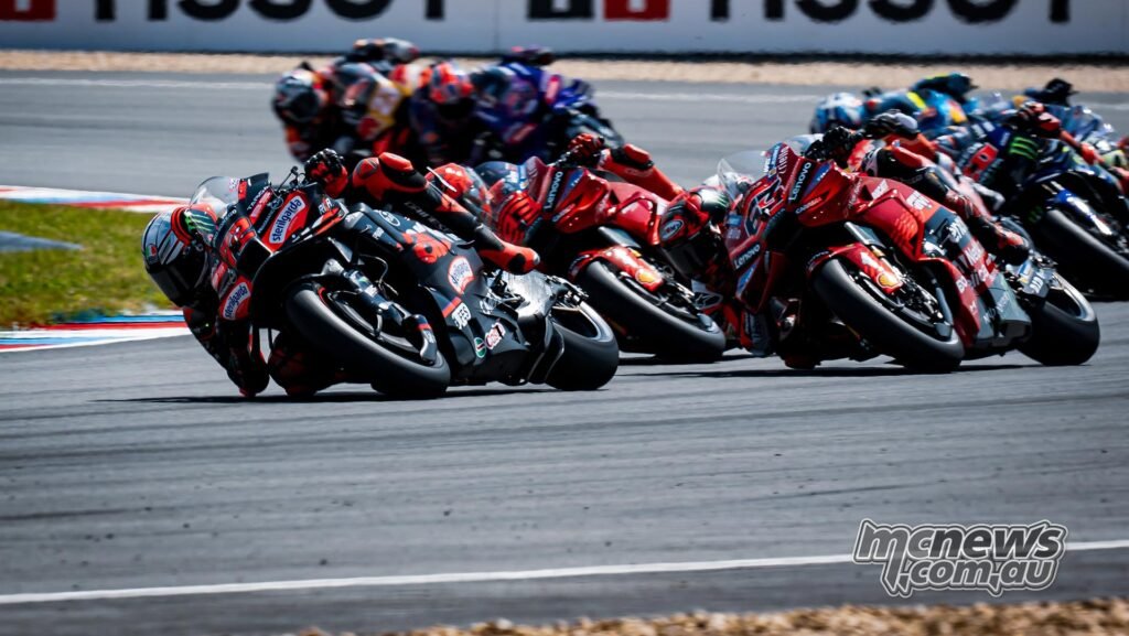 Come Sunday, a really determined-looking Pecco plonked himself on pole once more. His staff had doubtlessly obtained a stern speaking to in a single day. There may very well be no repeat of errant tyre-pressure warnings on Sunday. He received the holeshot too, however then ran huge and let Bezz previous. And Bezz has been using brilliantly of late. He has gelled together with his Aprilia, and bounces across the place like a child stuffed with cordial. Sadly for Pecco, Marc additionally took this chance to move him and safe second.